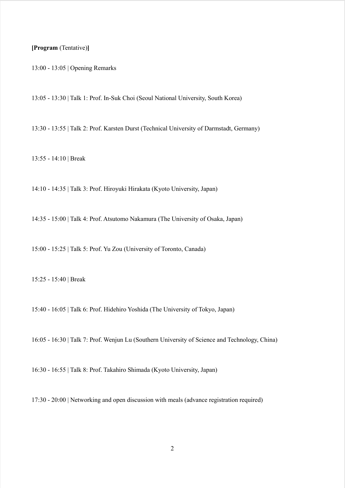Ryosuke Kinoshita, Yan Li, Hiroto Oguri, Eita Tochigi, Atsutomo Nakamura Evaluation of light illumination influence on dislocation behavior in III-V group semiconductors The 20th International Conference on Strength of Materials (ICSMA20), Kyoto International Conference Center (Kyoto Kokusaikaikan), Kyoto, Japan, June 3, 2025