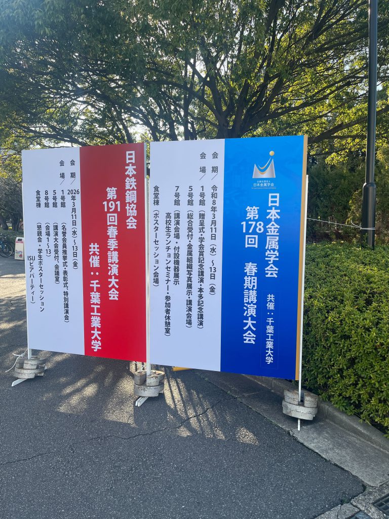 2026年3月11日~13日に、千葉工業大学新習志野キャンパスにて開催された「2026年日本金属学会春期(第178回)講演大会」に中村教授、黎助教が参加し、黎助教が「Nb 添加 SrTiO₃ 単結晶の室温塑性変形挙動と転位構造」というタイトルで研究発表を行いました。